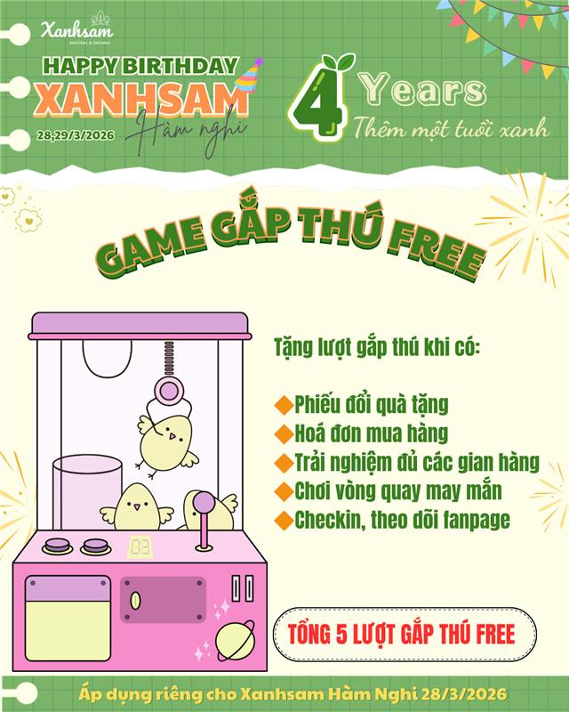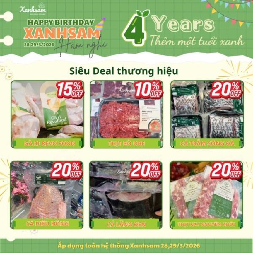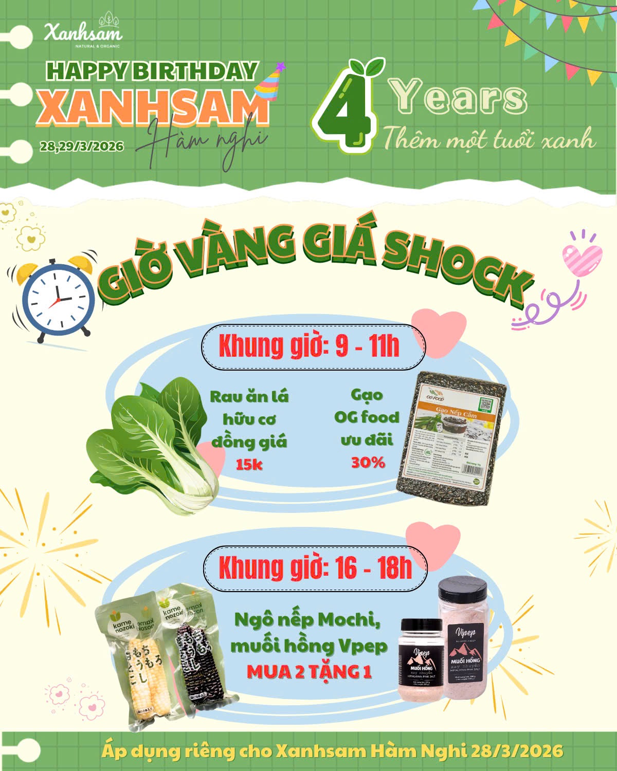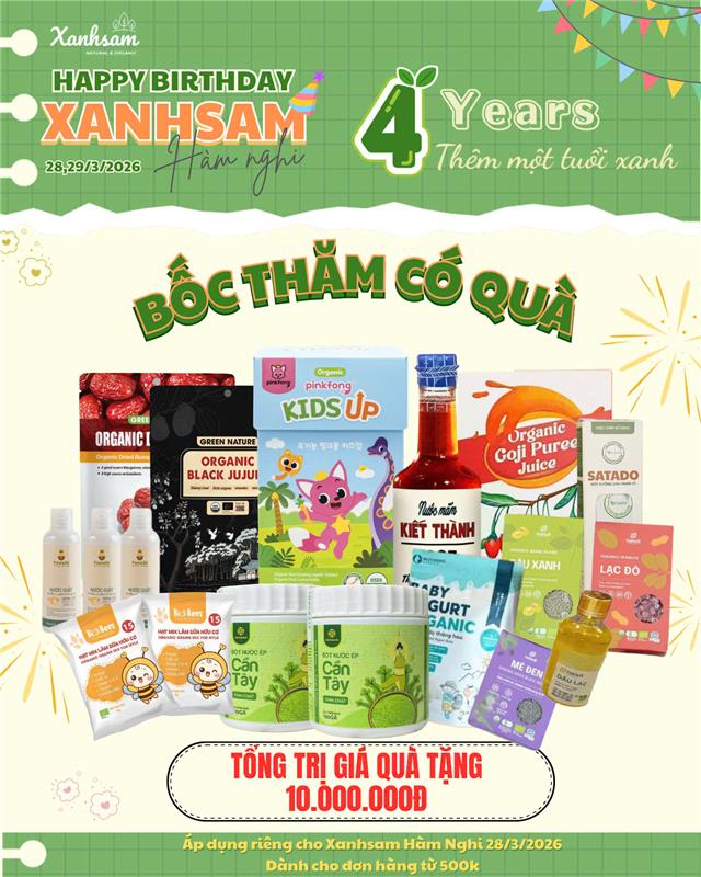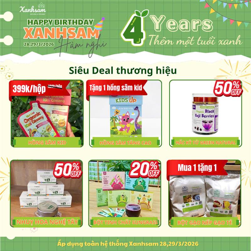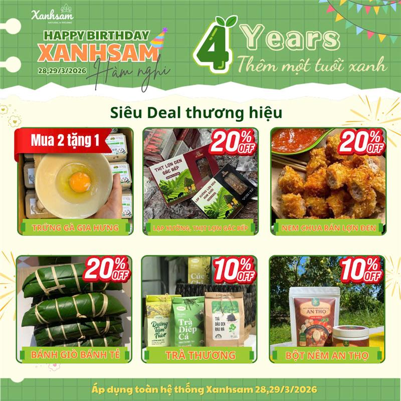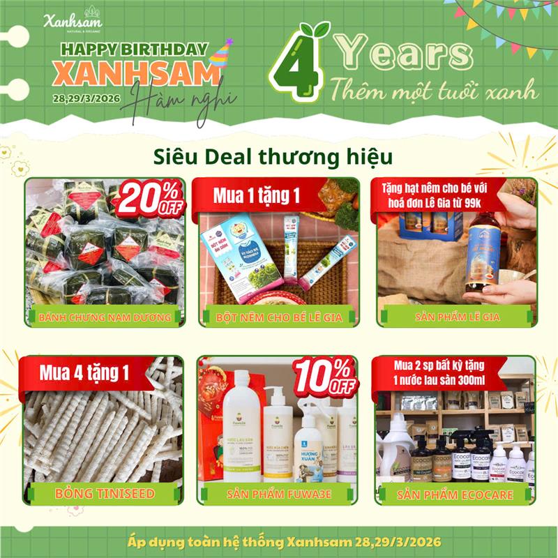 Công ty thực phẩm sạch Xanh Sẫm hân hoan kỷ niệm 4 năm đồng hành cùng hàng ngàn gia đình Việt trên hành trình sống xanh – ăn sạch. Dịp đặc biệt này, Xanh Sẫm mang đến chuỗi ưu đãi “khủng” nhất năm, hàng trăm deal thương hiệu, quà tặng miễn phí và hoạt động vui chơi dành cho cả gia đình.